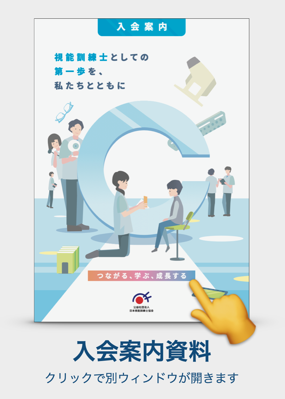 | 正会員 | 視能訓練士法(昭和46年法律第64号)による視能訓練士の免許を有し、 本協会の目的に賛同した個人 |