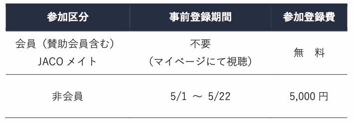 ・会員(賛助会員含む)・JACOメイトの方は申込不要です。